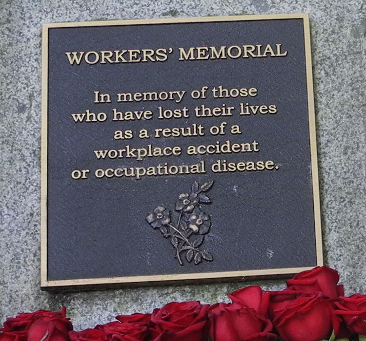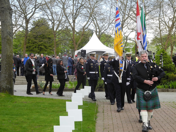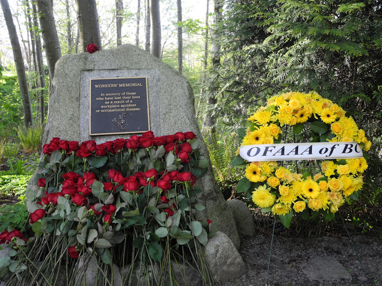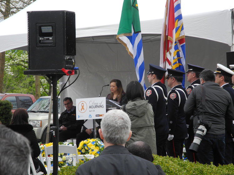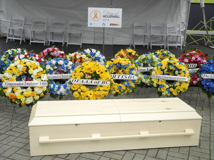 Day of Mourning Click on each image to view larger image. DAY OF MOURNING, VANCOUVER, APRIL 28, 2017 Cairn Close Up of Wording on Ciarn Memorial Coffin Michael Lovett Renee Ozee Piper Wreath BACK